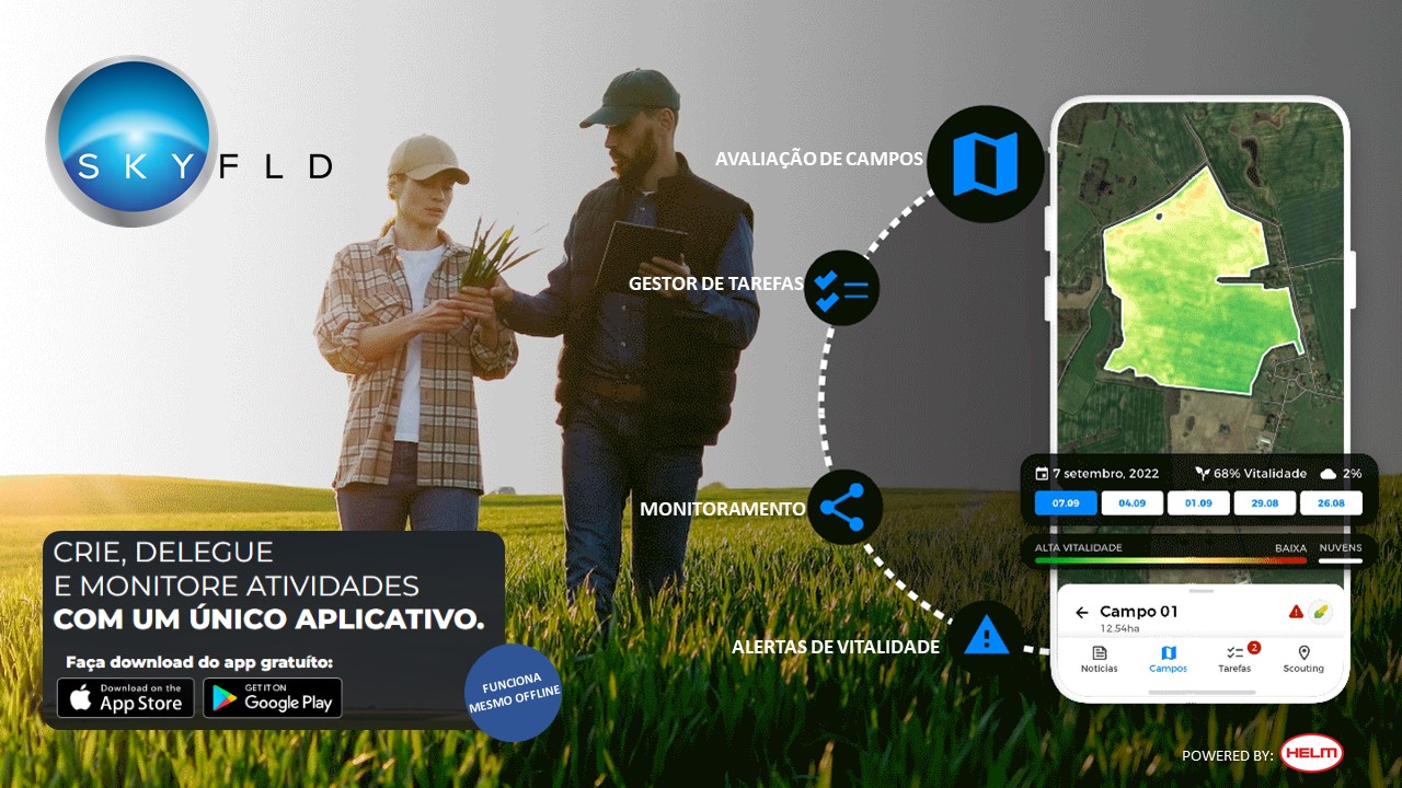 “O SKYFLD® 2.0 lançado no início de 2021 era uma versão web intuitiva, fácil de usar e que continuou em desenvolvimento desde então. A partir de agora, o Aplicativo SKYFLD® marca o início do SKYFLD® 3.0, com conectividade entre toda a equipe agrícola focada em cada talhão de uma fazenda, troca de dados e produtividade agrícola. SKYFLD® é a contribuição da HELM para uma agricultura mais resiliente e climaticamente inteligente”, salienta André Salvador.